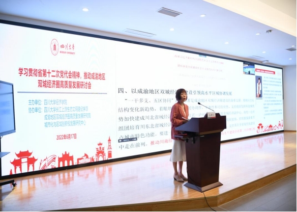 On June 17, 2022,a seminar onStudying and Implementing the Spirit of the 12th Provincial Party Congress and Promoting the High-quality Development of the Chengdu-Chongqing Economic Circlewas held in the N200 Academic Lecture Hall.The seminar was hosted by the School of Economics of Sichuan University, and co-organized by the School of Ecological Civilization Construction in the Upper Yangtze River of Sichuan University, the High Quality Development Research Institute of the Chengdu-Chongqing Economic Circle, and the Urbanization and Regional Innovation Pole Development Research Center.