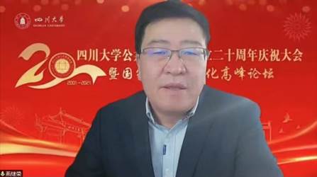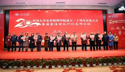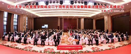On December 25, 2021, the 20th Anniversary Celebration of the School of Public Administration of Sichuan University and the Summit on Modernization of National Governance were successfully held. The conference was held in a mixed online and offline format, leaders and experts from the Public Administration Discipline Review Group of the Academic Degrees Committee of the State Council, the Steering Committee for Teaching Public Administration in Higher Education Institutions of the Ministry of Education, the National Steering Committee for Graduate Education in Public Administration and other organizations, representatives of sister institutions such as Tsinghua University, Peking University, Renmin University of China and Zhejiang University, leaders of the university and relevant functional departments of the university attended the conference. The opening ceremony of the conference was attended by representatives of the School of Public Administration, retired teachers, past members of the leadership team, faculty members, staff and students. The opening ceremony of the conference was hosted by Professor Jiang Xiaoping, Secretary of the Party Committee of the School of Public Administration of Sichuan University.