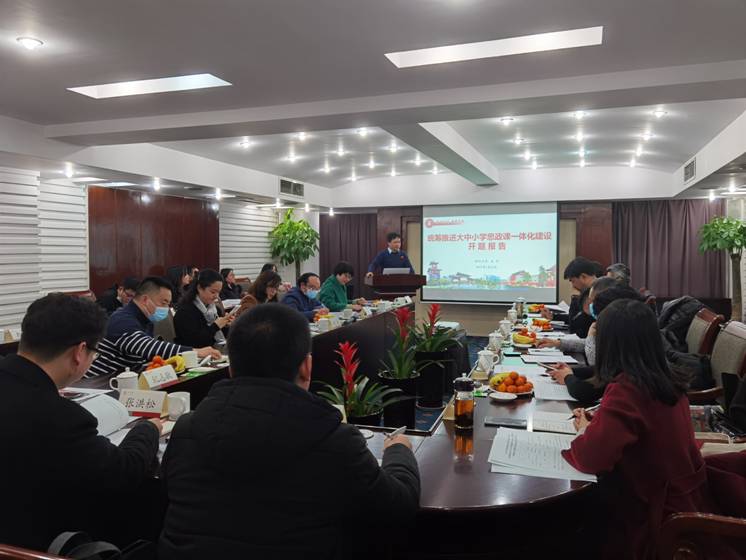 2021年1月23日,研究生院副教授吴宇博士承担的2020年度国家社会科学基金项目“统筹推进大中小学思政课一体化建设研究(批准号:20BKS196)”开题报告会暨首场学术研讨会在蓉顺利举行。本次会议得到了省市两级、成渝宜三地政府教育主管部门、有关大中小学、学校社科处的大力支持。教育部大中小学思政课一体化建设指导委员会委员、专家指导组成员、成都市龙江路小学常务副校长杨成兰,成都市委督查专员、政策理论研究专家白帆,成都市棕北小学校长徐映,成都市沙河源小学校长季志彬,成都市棕北中学副校长张东明,成都市华通成教育集团总裁林家锐,成都市棕北中学德育处主任、初中思政课教师杨应红,成都石室天府中学班主任、高中思政课教师景刚,成都市龙江路小学德育室副主任胡兴迪,成都市沙河源小学科研室副主任杨艳,yl23411永利(集团)有限公司官网社科处副处长、马克思主义学院教授张洪松,yl23411永利(集团)有限公司官网党委宣传部副部长、马克思主义学院教授纪志耿,yl23411永利(集团)有限公司官网马克思主义学院研究生思政课教研室党支部书记副教授陈加飞等专家领导应邀出席会议指导开题。会议由西华大学马克思主义学院副教授陈正芬主持。