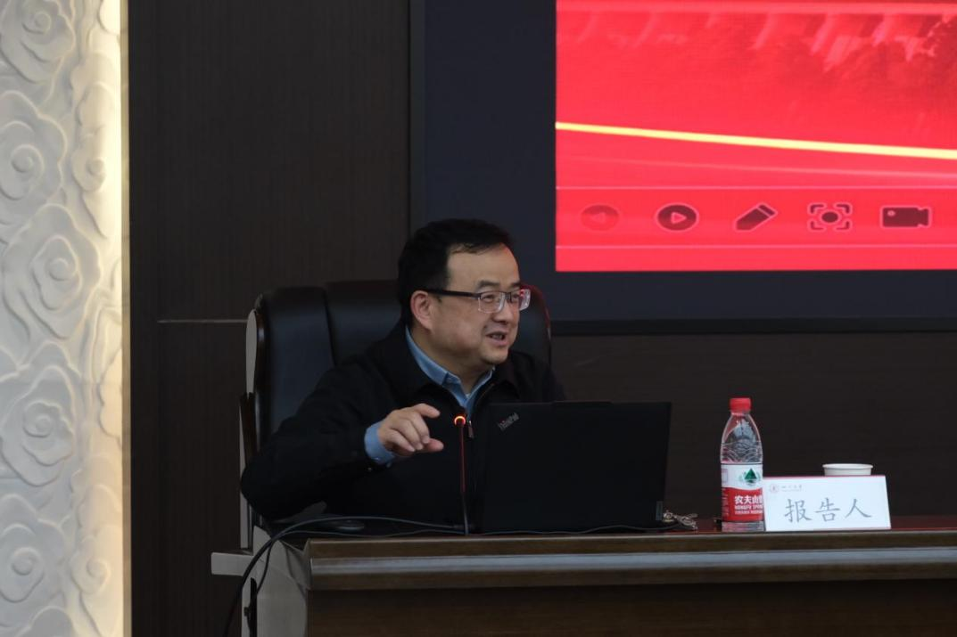 2026年1月15日下午,发展规划处、社科处、设备处、资产管理处、财务处、审计处党支部联合举行学习贯彻党的二十届四中全会精神专题报告会,邀请学校宣讲团成员、社科处常务副处长王彤伟教授作专题辅导报告。