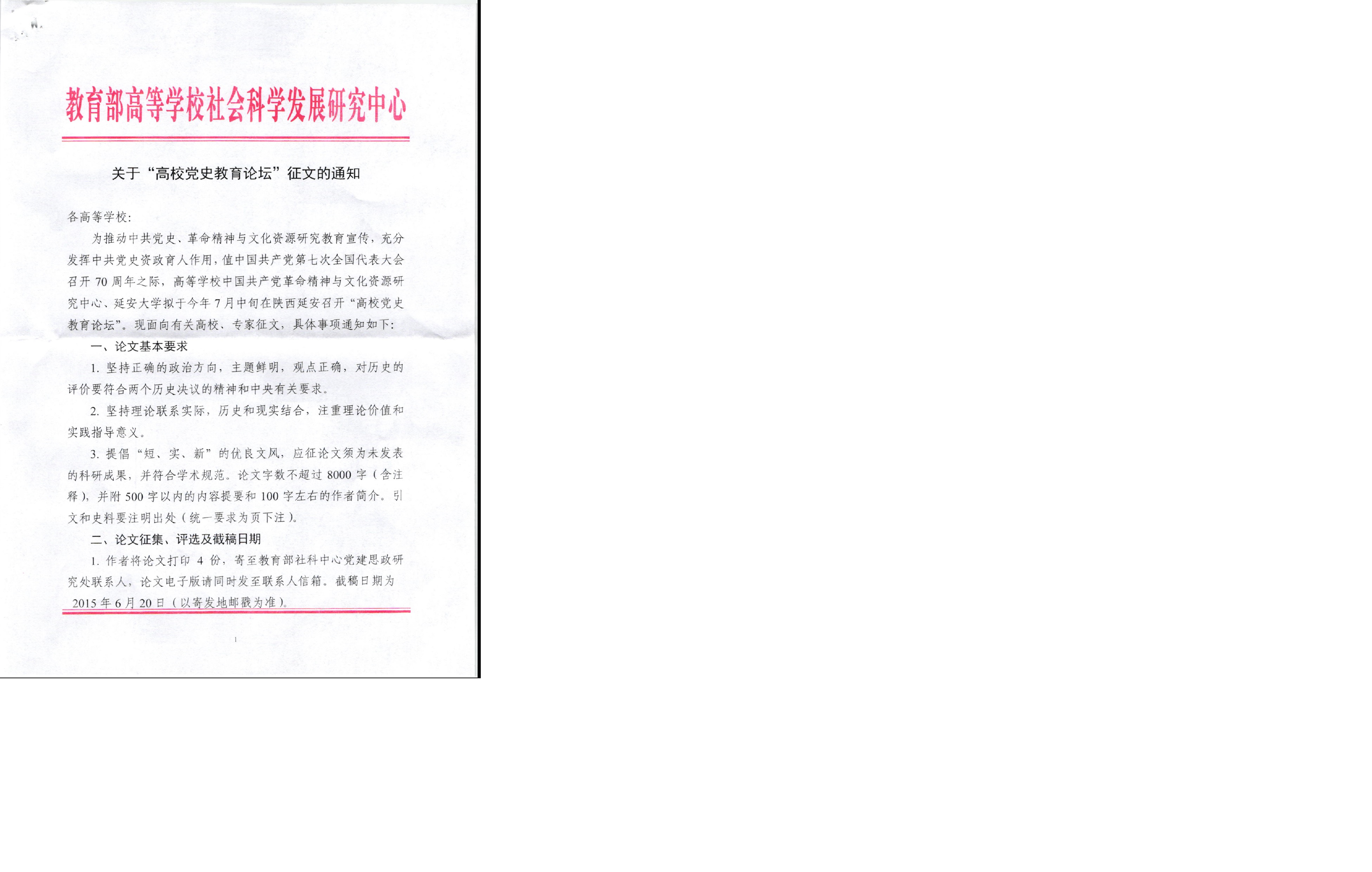 接教育部高等学校社会科学发展研究中心通知,现开展“高校党史教育论坛”征文活动, 具体详情见附件。