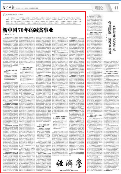 编者按:7月5日,《光明日报》理论·智库版刊发了我校经济学院院长蒋永穆教授署名的《新中国70年的减贫事业》学术成果。该学术成果回顾了新中国70年的减贫发展进程,党和国家根据不同时期的贫困问题,始终以发展解放保护生产力为根本减贫手段,采取“减贫组合拳”综合治理贫困,不断提升减贫的质量、效率,实现扶贫开发经济、社会、生态效益的统一。基于社会主义的本质要求和以人民为中心的价值导向,党和国家需要将消除贫困作为重要使命,追求全面整体脱贫,逐步实现共同富裕。全文如下: