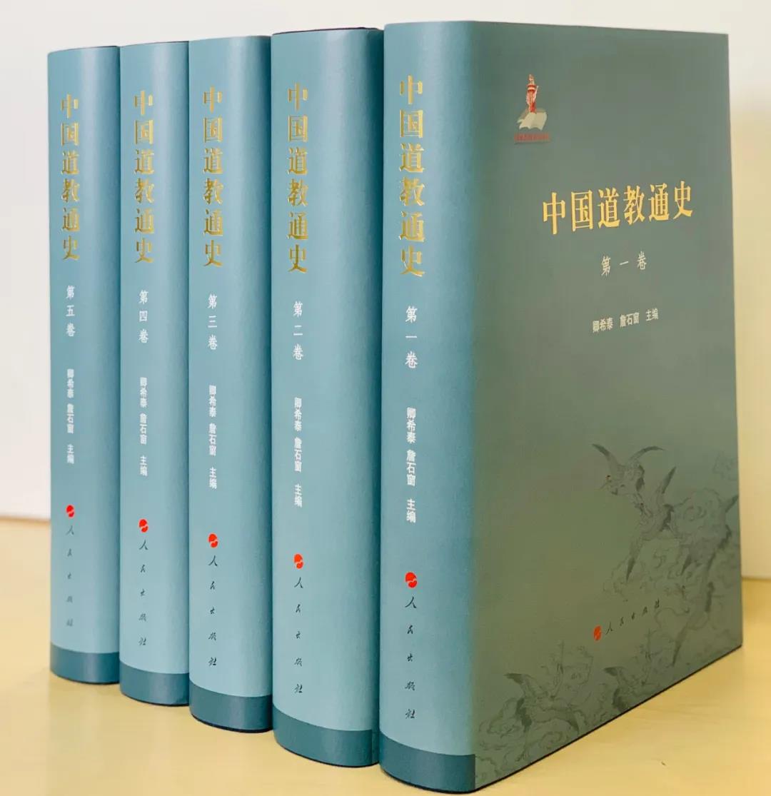 《中国道教通史》(全五卷)是由卿希泰、詹石窗主编,盖建民、周冶、陈耀庭等参与编写的道教研究领域的重要学术著作,于2019年12月由人民出版社出版。该书是新中国成立以来第一部系统阐述道教发展历史的通史性著作,全书约350万字,分为五卷,涵盖了从先秦至民国时期的道教发展脉络。该书提出了新的道教历史分期,结合通史与专史的研究方法,剖析了道教各宗派的形成与发展,论述了道教著名人物的事迹和思想。此外,书中还探讨了道教与儒、释二教的相互关系,以及道教对中国古代化学、 天文学、医药学、养生学、气功学和中国古代学术思想发展的深远影响。